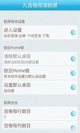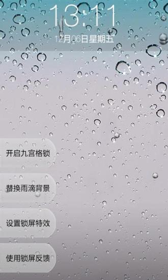iPhone雨滴解锁同款锁屏软件,九宫格解锁是一款应用于iPhone手机的解锁软件,现成功移植到安卓手机,软件是以画图案的方式来解锁手机锁定,在下次解锁屏幕时,只有按照设定好的模式滑动就可以解锁屏幕,九宫格解锁软件一定会让你的手机解锁方式与众不同!锁定Home能完美解决按房子键进入手机的情况,还新增多种超强功能,锁定home键,多样宫格,锁屏界面特效设置