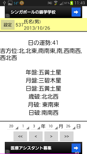九星気学を使って、その日の運勢や他人との相性を算出します。