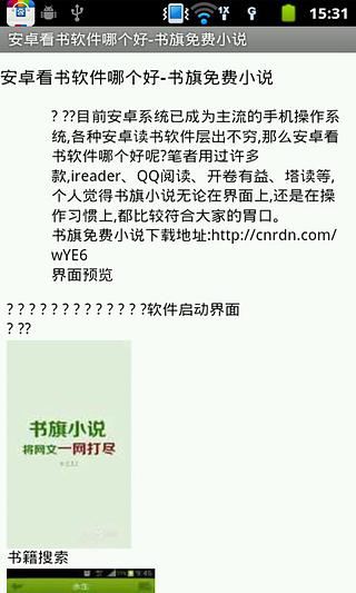 可以将在线小说下载到SD卡后离线阅读。从此不在担心在外面看到兴起的时候没有数据网络了,同时也省了移动数据流量。不止有攻略教程,还可以与其他人分享心得体验。快来下载吧。包括: 安卓看书软件哪个好-书旗免费小说怎么用手机下载观看小说书旗免费小说介绍及下载书旗免费小说介绍及下载用手机怎么下小说小说怎么下载...