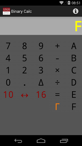 当你想转换当前的数字为另一个记数系统时,只要触碰右边红色的数字就可以了。(例如,16为十六进制)。