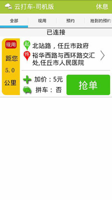 通过“云打车-司机版”出租车司机可以接收到乘客的呼叫,并查看乘客位置。从而降低出租车的空驶率,降低出租车成本,提高效率。
