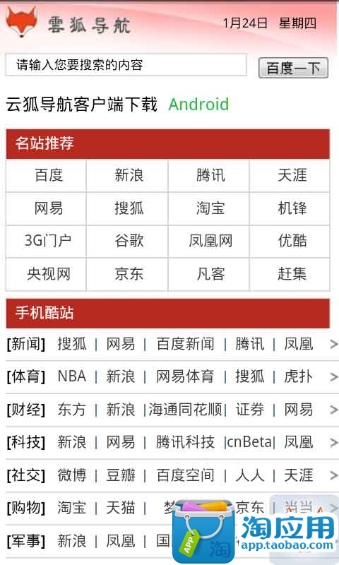 全面导航,制定人性导航,阅资讯、读小说、看视频、上微博、玩游戏更方便