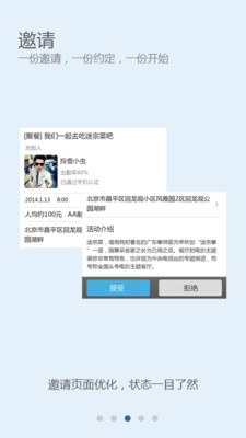 互邀让兴趣活动的更加精准高效,根据时间、地点、兴趣等要素为你提供需要的信息。