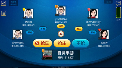 1.抢庄为传统的经典玩法,大家争抢坐庄;