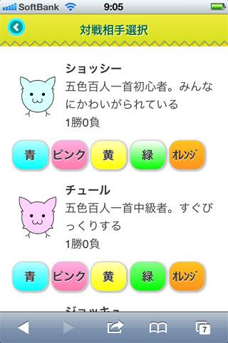 五色百人一首対戦ゲームです。