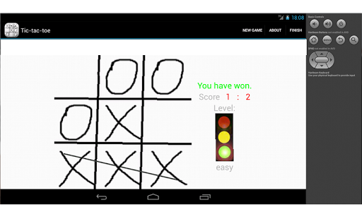 播放器(倍)飾演對Android應用程序(O)。這兩名球員輪流把他們的商標在一個3×3格寬公平的競爭環境。誰設置前三的他在一個行,列或對角線主要是贏家字符。