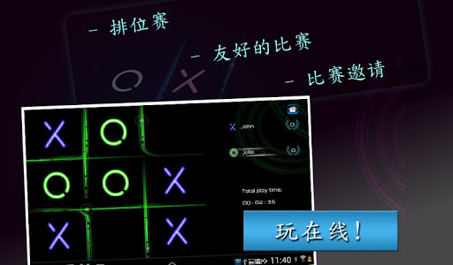 独特和高质量的新设计,生动的音效,使流光井子棋成为智能手机应用中最流行的游戏!井子棋-或者叉叉圈-是众所周知的2人游戏。游戏目标是放置标致-叉或者圈-在一排中放3次来赢得游戏。