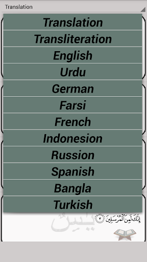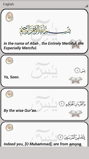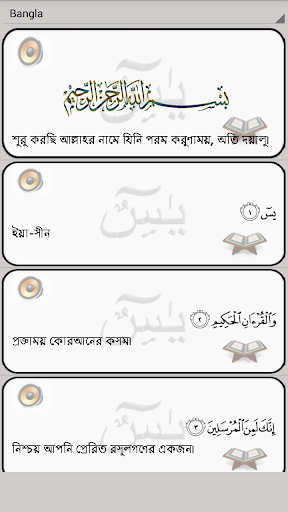 這個伊斯蘭應用程序是免費為Android用戶。該應用程序包含古蘭經亞辛與MP3音頻和音譯和翻譯在十個不同的流行語言,如英語,德語,烏爾都語,法語,波斯語,印尼語,土耳其語,西班牙語,孟加拉語和俄語。好聽的聲音和美麗的阿拉伯字體用於更好地理解,