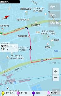 交通取り締まりを探知した際はトップ画面下の地図中(Google Map)に取締りの種別毎に色分けされたマーカーにより表示され、更に音声と振動にて通知します。