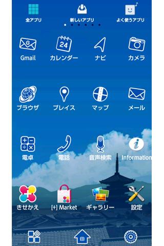 変更…HOMEアプリ「[+]HOME」設定後、端末メニューボタン>きせかえ