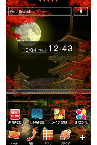 ★無料★大きな満月と真っ赤に色づいた紅葉が京都の秋の夜空を彩る和風のきせかえテーマを無料で配信!
