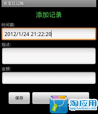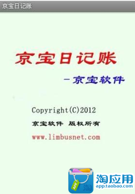 京宝软件34,明明白白理财,快快乐乐生活!使用方法:1、先选择"设置"菜单,初始化数据库 2、点"添加"增加流水明细 3、点"查询"、"浏览"查阅以录入信息 Copyright (C) 2012 京宝软件 QQ:1092146870 E-mail:fjb2011@qq.com 官网:www.limbusnet.com 友情单位: 蔚蓝网:www.wl.cn