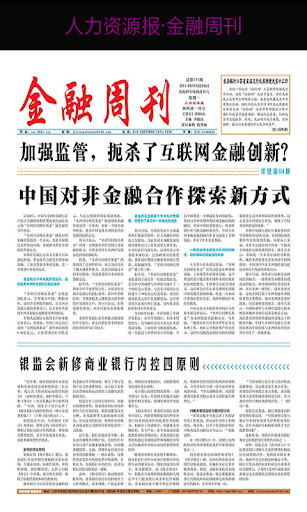 《人力资源报•金融周刊》是国内唯一一份以全球通行的专业术语“人力资源”命名的人力资源专业报纸,每周一出版主报。《人力资源报•金融周刊》适应传统人事管理向现代人力资源管理、现代人力资源管理向战略人力资源管理时代的转变理念的要求,以“承载经典智慧,提高管理能力,搭建沟通桥梁,促进共赢多赢”为办报宗旨,不遗余力地向业界倡导:正本清源,树德开慧;道术并重,标本兼治。