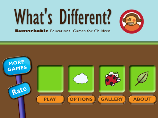 什麼是不同的完整版本(125個完整的水平)一個簡單而巧妙的教育遊戲。你的孩子一定會喜歡它。所不同的是從 3歲幼童的教育遊戲。 - 這是一個年輕的思想家們感到非常困惑 - 如何玩遊戲:你會看到四個對象,其中三個連接,一個是不同。觸摸不同的圖片移動。 - 所不同的是廣告的免費。 - 不同的是,旨在幫助教導青少年兒童是怎麼想的。 - 什麼不同的包含一個超級友好畫廊,讓孩子可以瀏覽通過遊戲的圖像,捏放大和發揮。 - 有什麼不同的功能,界面友好高端的圖形和動畫。 - 所不同的是強烈建議言語治療師。令人矚目的是一個專業的遊戲工作室,專門從事教育遊戲。平板用戶:我們正在努力,在Tablet版本當前版本只有一些的車型有。