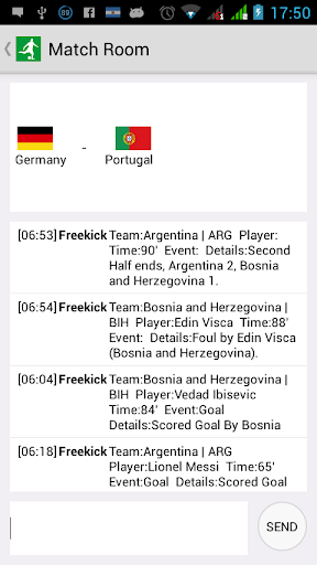 这间客房是让所有的比赛及其相关的基本统计信息的实时更新是有用的。这个平台可以由用户使用前分享他们的表情和感受,期间和符合这种应用程序的其他用户之后。