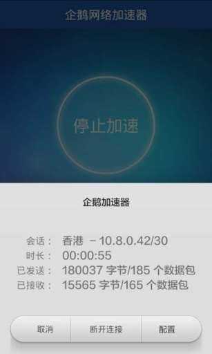 通过加速器加速网络后,智能在后台运行,并在通知栏显示您当前加速的网络,网络流量及速度让您一目