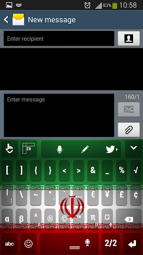 是你的国家感到骄傲,无论你在哪里,让世界知道它通过定制您的小工具与伊朗触宝键盘主题. 你的国家给你最美好的回忆,朋友,温馨的家庭等等荣誉,并自豪地成为它的一部分. 是你们美丽的国家的真正支持者,并与所有的朋友分享这个伊朗触宝的键盘主题. 戴伊朗傲然的颜色,你将永远有你可爱的国家的提醒.