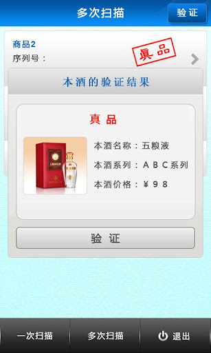 本软件主要用于各种商品的防伪。本软件使用NFC技术能够读取带有NFC芯片的各种商品,将读取到的商品信息发送到服务后台,验证该商品的真伪。操作简单,读取速度快,安全性高。