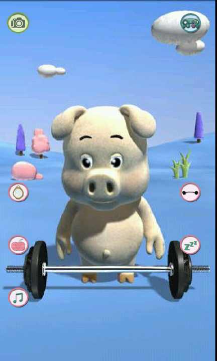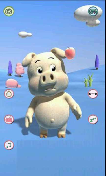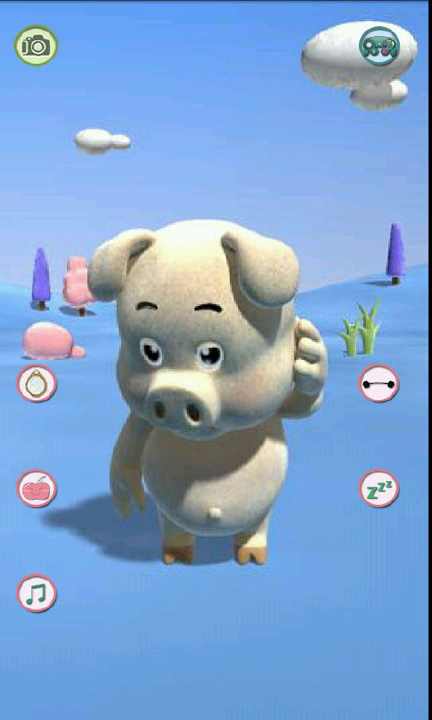 小猪非常可爱,可以模仿你说话,可以做各种搞怪的动作,通过点击界面上的图标,可以让小猪表演各种各样搞笑的动作,你还可以给小猪拍照,保存到本地相册或者分享给好友,赶紧试试吧,小猪可是吉祥宠物,不要错过奥~