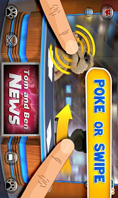 . 按猫爪按钮,汤姆将用水枪、气喇叭或喷枪骚扰本。您需要升级应用才能获取这些动画。