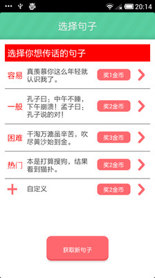 1、发起人创建新游戏:选择句子,进行录音,然后由自己或系统选择下家,发送录音。