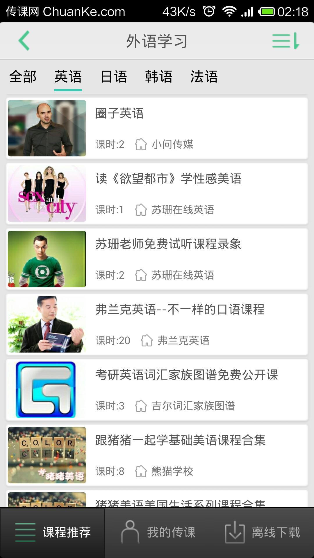离线下载、课程学习历史,传课视频课程的每一个功能都满满带着爱。通过手机,无论是在家里,咖啡厅,地铁上还是小公园,只要有Wifi,只要有3G,拿起手机就可以轻松学习。跟长腿偶吧学韩语,跟疯癫的姐姐感受外国文化,甚至会有阿姨教你做炸鸡,在传课,众多不一样的课程等待你的发掘。