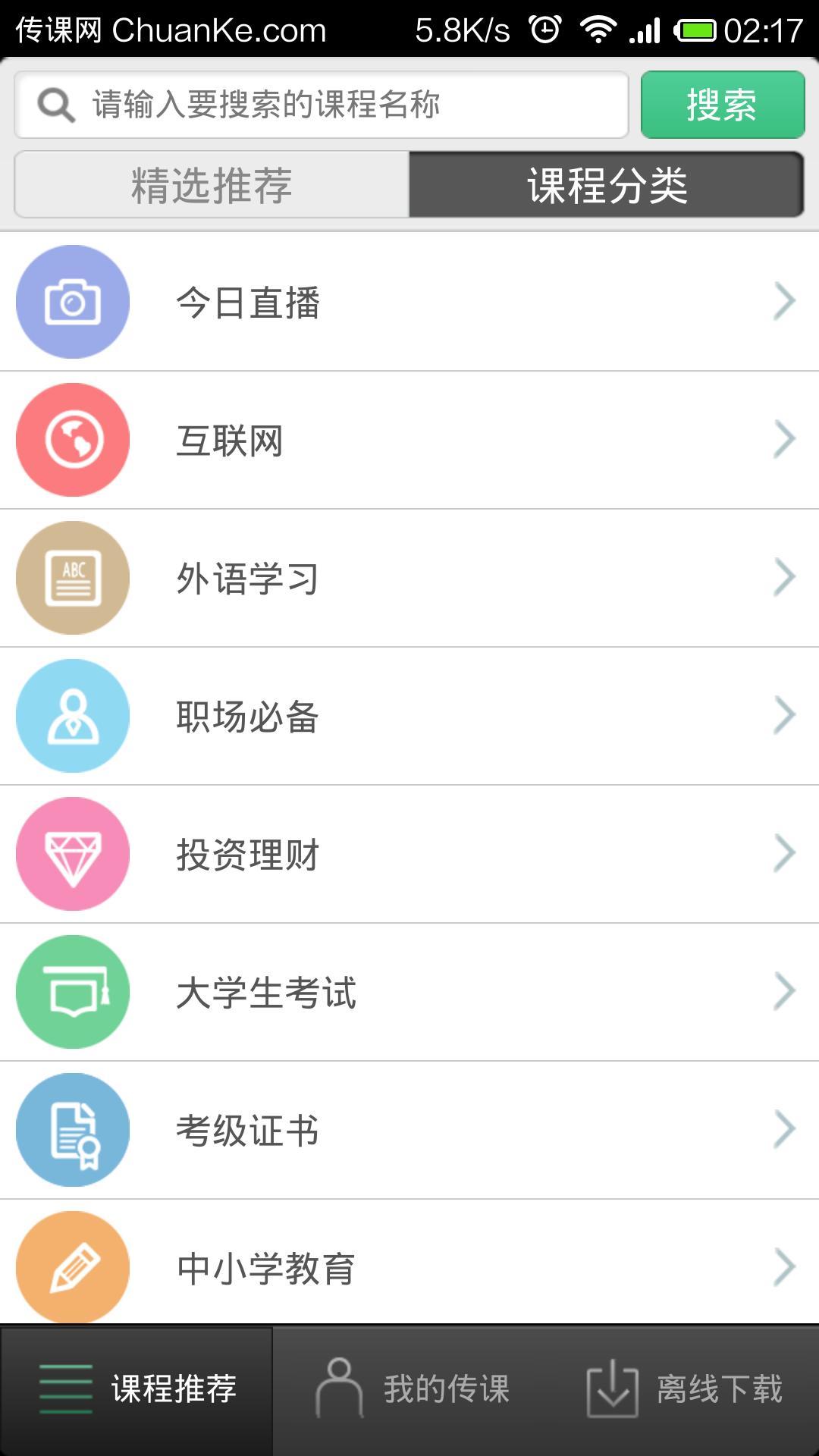传课Android版是传课网推出的Android平台的一款学习应用。通过传课Android版,可以实现随时随地的观看传课网的所有免费直播课程和海量视频课程。