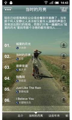 人在长大后才会惊觉光阴的荏苒岁月的匆忙,别的不说,单就耳边呼啸而过的旋律、声音,仅仅三五年过去,便已恍若隔世,那些曾经感动过我们的声音,如今听来总是带着深深的回忆印记,会不惊觉地想起当时的人和事,说一声你好,旧时光,让我们在这些熟悉的旋律中重温那些人、那些事……
