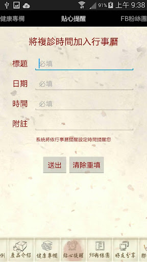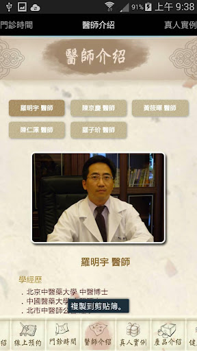 本診所進門時即聽到輕快響亮的問候聲,隨即有小姐送上茶飲,坐在寬敞明亮的候診室內,喝著診所特別現煮的中藥養生茶,在輕鬆的背景音樂中,面對醫師和藹親切的態度,您可以卸除心房與醫師討論病情,在醫師詳細的望、聞、問、切解說下,可以更容易了解自己的身體狀況。