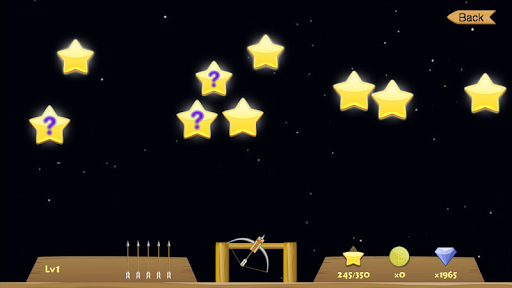這是一款休閑小遊戲. 玩家可以通過弓箭來射擊天上的星星. 但是由於弓箭是左右搖擺的,所以射中想要射的星星並不是那麽容易。遊戲一共設計了80個關卡,越往後越難,所以通關還是有一定難度的。