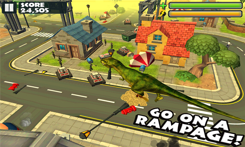 《侏罗纪入侵:城市毁灭 Jurassic Rampage: Smash City》是一款独特的模拟休闲游戏,扮演霸王龙摧毁一座座城市,尽情拆吧。当然,人类是不会让你顺畅无阻的毁坏的,会有很多持枪民警来杀你的,注意定期清除一下他们,要不很快你就会Game Over的!
