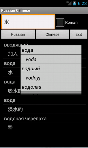 俄羅斯普通話 - 中國(拼音)詞典 - 旅行字典翻譯俄羅斯俄羅斯或羅馬發音普通話漢語拼音(漢語拼音)普通話或普通話字符顯示一個單詞列表。這本字典也從拼音或普通話俄語翻譯。從反向翻譯的翻譯列表複製一個字可以用來尋找同義詞,了解更廣泛地使用在俄羅斯語言普通話字。雖然俄羅斯漢語詞典不提供定義或例子,在這樣的翻譯軟件的使用提供了一種機制,以便更好地了解普通話的話,在俄羅斯方面沒有定義需要你。 30K參考。