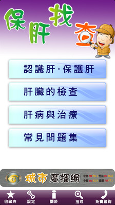 2. 除了简明的基本知识, 本程式还有「拨打免费保肝諮询电话」以及「保肝知识关键字查询」两大功能, 帮助您更加了解自己的肝。