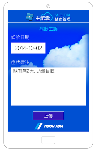 4.可自行建立就醫時對醫師表達的自訴,及血壓..等生理量測資訊,上傳雲端個人健康管理中心。