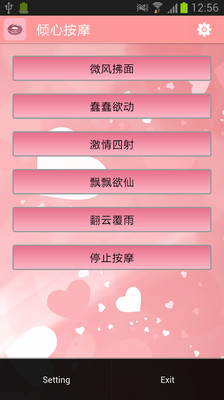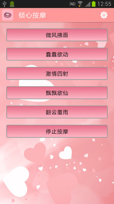 倾心按摩是一款Android平台手机按摩生活应用。多频率的振动模式,让手机具有解除疲劳的按摩器功能!闲暇的时光,拿起手机,启动按摩,给疲惫的身体一个舒适的解放!不管是汉子还是女子,我都在用,你还不用吗?
