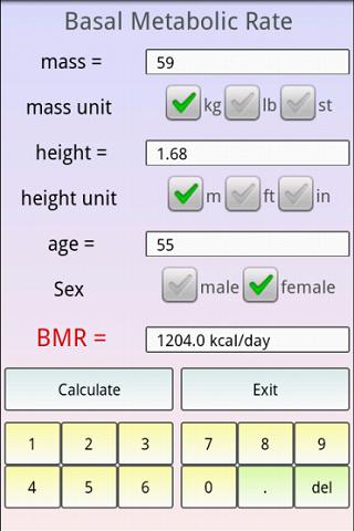 基礎代謝率:你可以計算你的基礎代謝率(每日由人類休息時消耗的能量)。只要輸入你的體重,身高,性別。