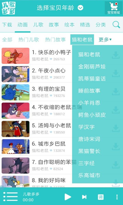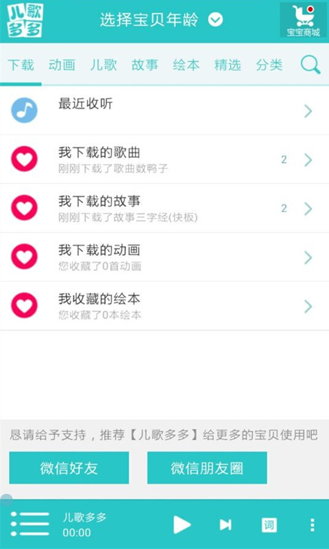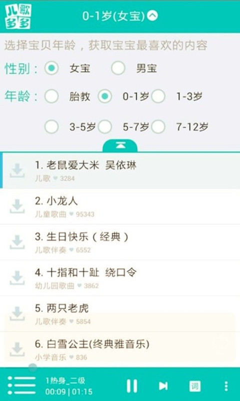 铃声多多团队出品!官方推荐,家长必备,百万儿歌,故事,童谣,动画片,童话! 儿歌多多,拥有百万儿歌故事资源,适合0-12岁儿童及家长使用。 首家精准逐字歌词,宝宝边听边学! 提供妈妈和宝贝最爱的胎教音乐、儿歌童谣、儿童故事、睡前童话、 唐诗三字经、作文朗诵、少儿英语、百科全书等有声读物。海量故事,天天更新; 儿歌故事屋,给孩子一个快乐的童年。 内容简介: 西游记,儿歌大全,三字经,弟子规,百家姓,安徒生童话,字母歌,摇篮曲,唐诗三百首,宋词,小燕子,智慧树,黑猫警长,两只老虎,小星星,巧虎,成语故事,猜谜语。