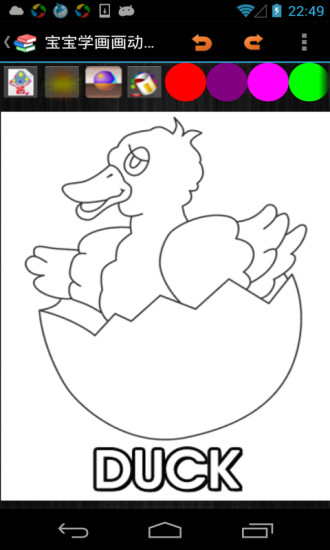 一款适合2-8岁宝宝的图片颜色填充应用,含有丰富的画册和自然界各种动物。让宝宝认识动物、认识色彩,学会各种动物名称,学会颜色搭配,是一款非常不错的早教益智软件,培养孩子的画画兴趣。