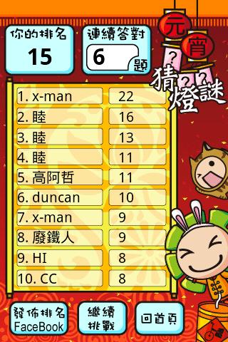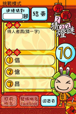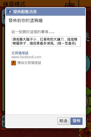 即時分享燈謎至Facebook與好友一起猜燈謎