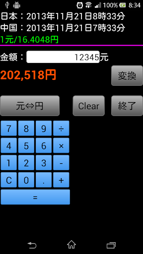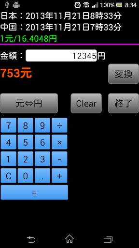 また、ボタン「元⇔円」を押すことにより、日本円から元への変換も可能です。