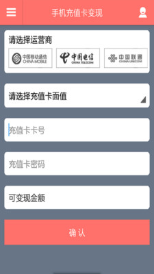 帮用户将闲置的手机充值卡变现,支持三大运营商全部面额手机充值卡,实时变现,自由取现。变现比例可高达97折,无任何附加收费。支持提现到银行卡账户或支付宝账户。