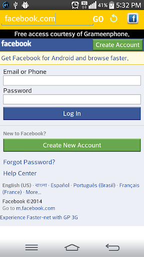 瀏覽與Facebook的免費移動數據連接。同時瀏覽任何網站,但是這不會是免費的,將誹謗數據速率從您的移動運營商收取。