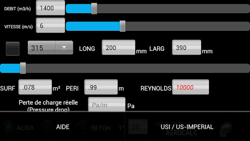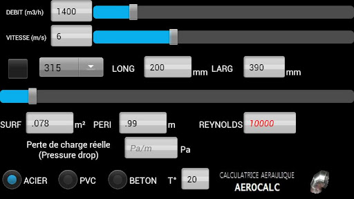 計算器,用於確定空氣流動速度,直徑,壓力降和的空氣流部分不同的材料製成的護套。