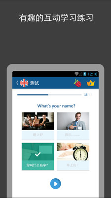 1. 通过各种学习活动来学习基础知识,其中包括: 词汇和语法课程、音频对话以及互动测试。