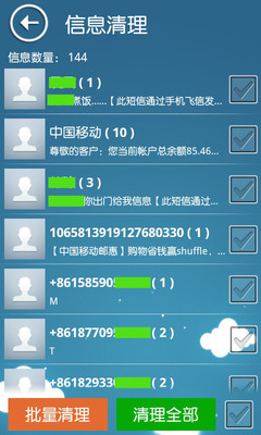 3、短信清理:一键快速删除短信,标记删除选定垃圾短信;