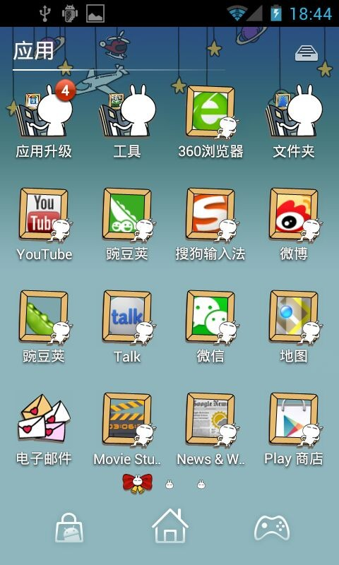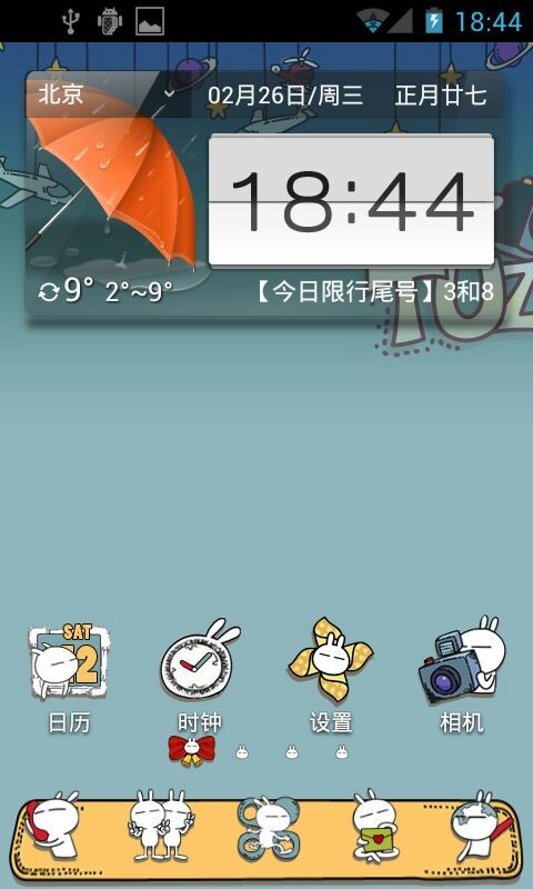 兔斯基主题来了!卡通的兔斯基主题形象,可爱的兔斯基主题图标,搭配温和的主题背景……点心主题设计师倾力打造,与萌宠兔斯基相约:不萌翻你誓不罢休,快来试试吧~~