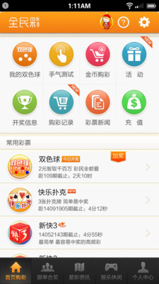 全民彩,给你最好的购彩体验——手气测试、开奖公告、摇一摇购彩、合买追号,还有超级管用的中奖技巧!诱人活动奖上奖,你还不快来……