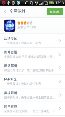 还在为玩手游过不了关,拿不到高分困扰吗? 现在你可以不再为这些事情烦恼,因为神奇的《手游攻略》来了! 我们提供众多当前热门的游戏攻略内容,包括文字攻略、视频攻略,游戏新闻等。 内容更新及时,为你提供最快的攻略内容服务。 《手游攻略》客户端,是由讯游提供,专门为喜爱手游的用户提供文字、图片、视频攻略以及资料库的软件。让用户更轻松、愉快的体验游戏的乐趣。 如果有什么问题和建议可以反馈给我们,我们会努力做的更好! 目前我们支持以下游戏攻略: 大侠OL,我叫MT online,忍将,神魔,斗三国,大掌门,君王2,撸啊撸,龙语者,萌江湖,萌江湖,仨笨贼,百万亚瑟王,找你妹,爱死祖玛,爸爸去哪儿,部落战争,保卫萝卜,苍穹之剑,天龙八部,天天飞车,天天酷跑,我是火影,武侠来了,武侠Q传,王者之剑,仙战OL,一闯到底。
