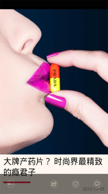 还在为穿什么烦恼吗?还在被怎么穿困扰吗?还在为与时尚脱节而忧愁吗?妹纸们注意了!《全球时尚播报》APP华丽登场,只为拯救那些天天为变美发愁的MM们!这里有全球最新时尚资讯,明星、时装、美容、生活、视觉五大栏目,给你从头到脚,从内到外,修炼成精的机会!《全球时尚播报》就是你的私人形象设计导师!赶紧动起你们的芊芊玉指,下载《全球时尚播报》,启程你的全球时尚之旅!