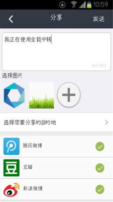 通过全能中转,您可以很容易的添加分享到很多app到您的移动应用。不论是苹果的iOS平台或者Android,应用互通让您的应用插上分享的翅膀。